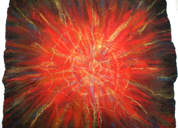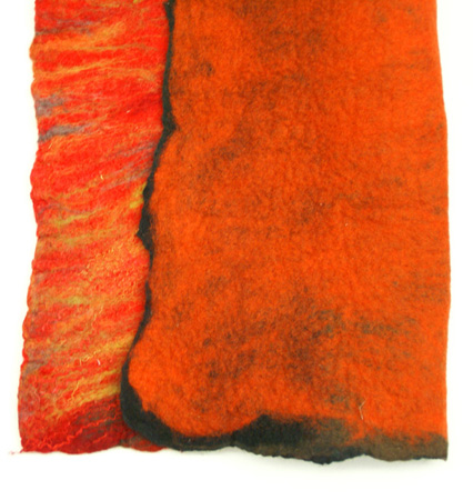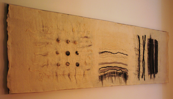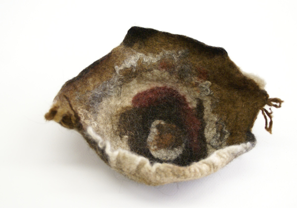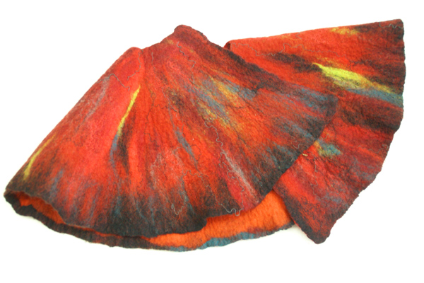 Een aantal jaren geleden ontdekte ik de schoonheid en kracht van vilt, zacht en oersterk. Het proces is ambachtelijk en vergt gevoel, fantasie maar ook kracht. Als ambacht is het toe te passen in kleding. Ik maak graag sjawls met wol en zijde, kleding maar ook wanddecoraties. En met vilt kun je ook geweldig inpakken en verrassende verbindingen maken tussen zeer verschillende materialen.